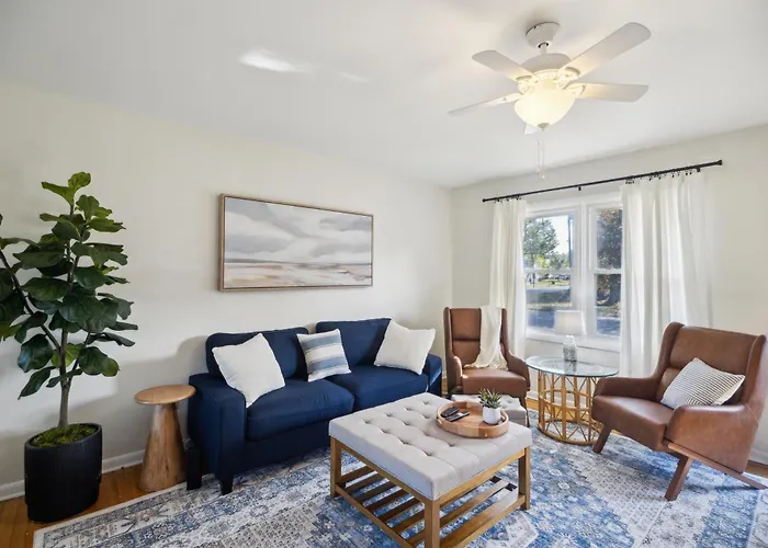 La Comfy Coastal Getaway with Modern Comforts home está situada a 10 minutos en coche del Hampton Roads Bridge-Tunnel y permite a sus huéspedes practicar senderismo y ciclismo.